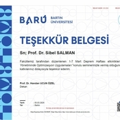 Emphasizing the importance of decision support systems in making accurate decisions under uncertainty during disasters, Salman also answered questions from the participants. At the end of the seminar, a certificate of appreciation was presented to Prof. Dr. Sibel Salman by our Dean, Prof. Dr. Handan Ucun Özel, in recognition of her valuable contributions.